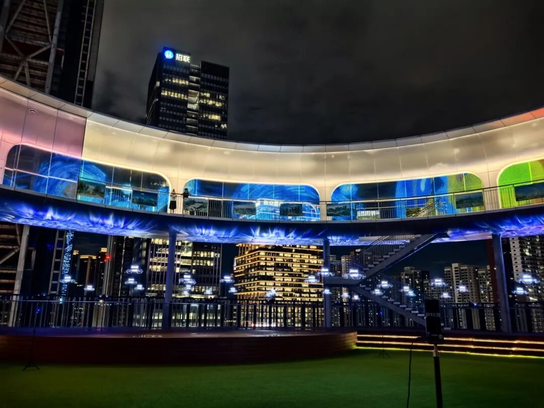 590㎡高空展覽空間+環形走廊,擁有全球最大單體建筑光電玻璃大屏,科技感十足。可承接全球藝術珍品巡展、影像作品展、高端品牌展覽、藝術交流論壇、80-100人規模的沉浸式體驗展等,以獨特視角展現藝術與科技的融合魅力。
