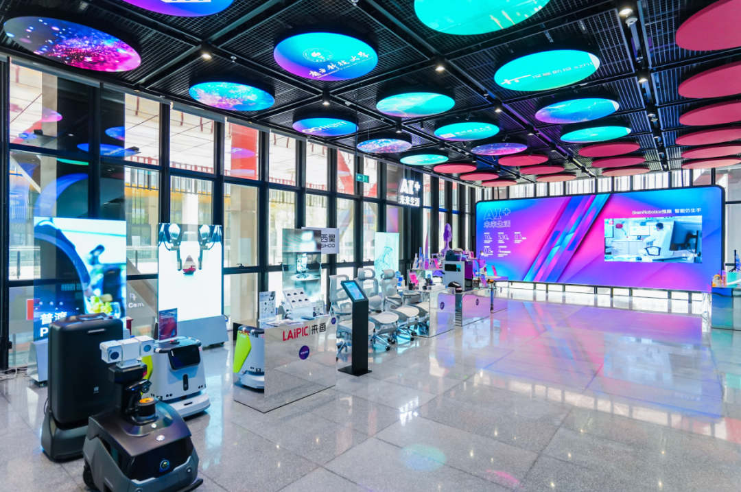 300㎡科技主題展廳,是科技新品首發首秀的專屬舞臺,聚焦“AI+智能工業”“AI+未來生活”“AI+藝術體驗”三大方向,60+企業最新科技展品常駐,配備專業LED屏幕、不同尺寸的展示臺等。可承接科技技術展、前沿產品發布會、AI主題互動展、科技創新成果展等,是鏈接科技與未來的核心展示窗口。