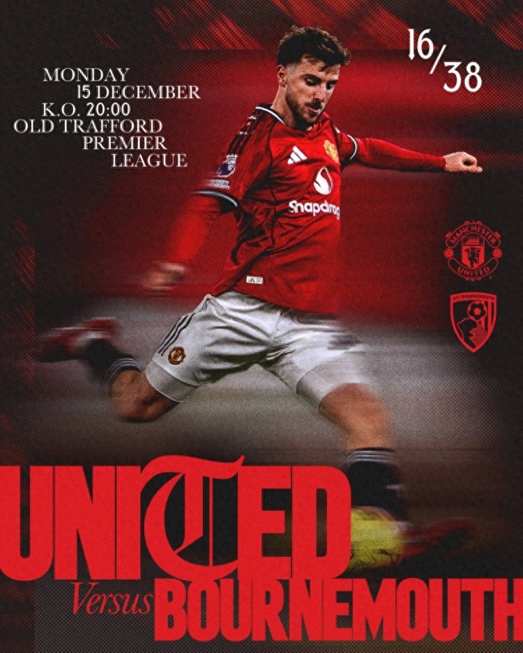 沖擊前五名!曼聯發布對陣伯恩茅斯海報:芒特單人出鏡