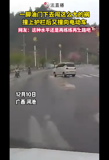 一腳油門下去闖這么大的禍 撞上護欄后又撞向電動車