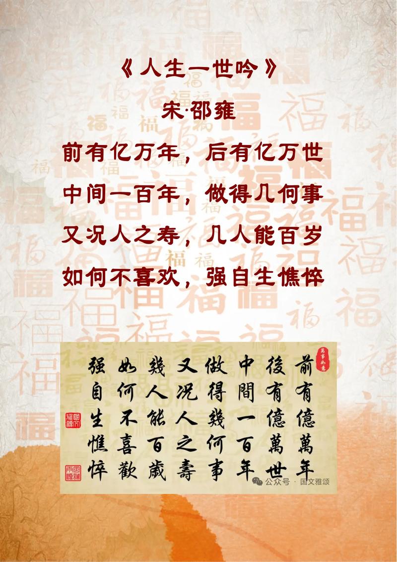 邵雍是北宋理學象數學派的代表人物,其詩被歸為“理學詩”或“擊壤體”。《人生吟》典型地體現了其詩風:不尚辭藻,直指根本,以詩的形式進行哲學思辨。它不激發激烈的情緒,而是提供一種冷靜的觀照與清明的自省。它邀請讀者跳出“不識廬山真面目,只緣身在此山中”的局限,站在宇宙的高度審視人生,又從一笑一味的細微處反思靈肉關系,最終指向一種理想的生命狀態——如一張潔凈的紙,內里卻包裹著自足而豐饒的天地。