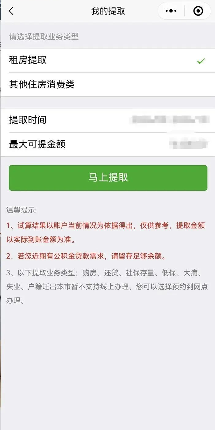 二、登錄后點擊【提取申請】,選擇【租房提取】,確認提取信息,點擊【馬上提取】即可。