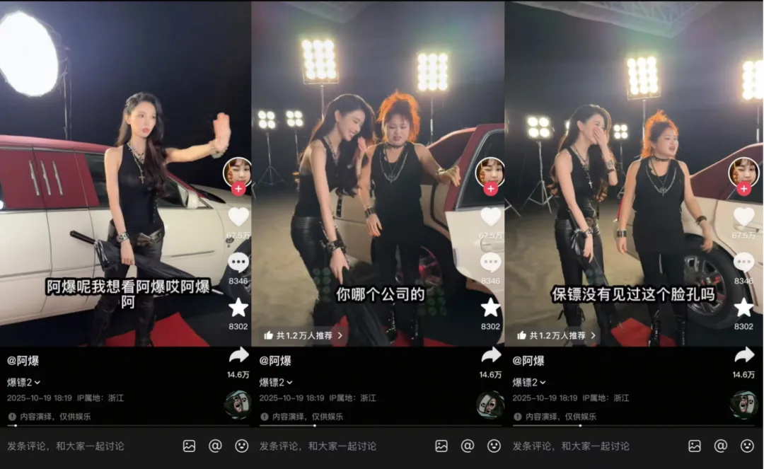 2025年,搞笑女網紅再次過春天。以風頭正勁的阿爆為例,今年8月,她與顏值網紅方圓開始共同創作,合拍作品幾乎都成為熱議爆款,兩人皆收獲大批新粉絲。而在此前,二人都苦于漲粉困難,產生了或多或少的流量焦慮。