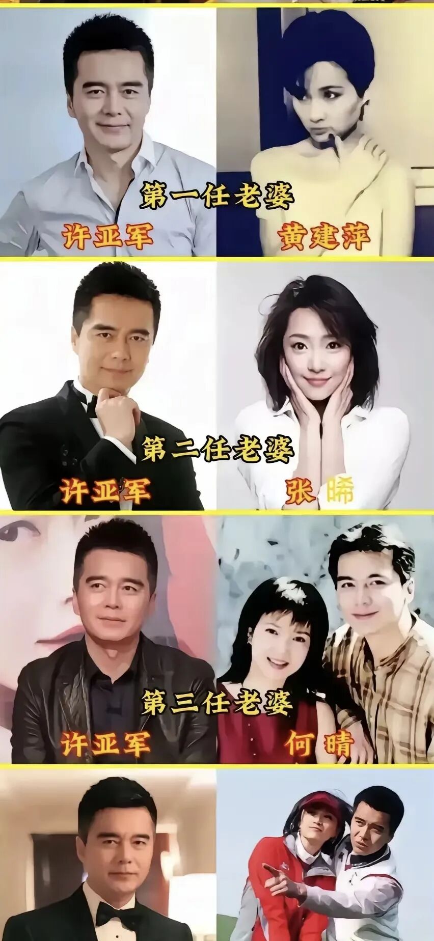 許亞軍說,他一生結過四次婚,最難忘的是第三任妻子何晴。