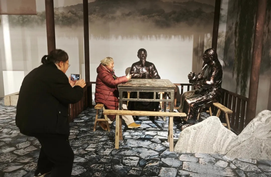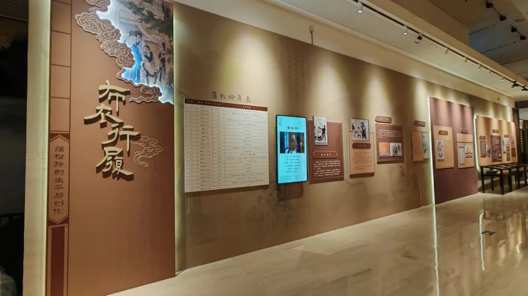 本次展覽突破傳統(tǒng)展陳模式,以科技賦能觀展體驗,打造沉浸式聊齋文化之旅。展廳內(nèi),LED屏全景播放“聊齋幻境”數(shù)字視頻,讓《聊齋》經(jīng)典人物次第浮現(xiàn),完美還原原著的奇幻意境;特別模擬搭建蒲松齡茶棚、“聊齋”書齋等場景,帶領(lǐng)觀眾穿越時空,直觀感受蒲翁潛心創(chuàng)作的書香墨韻;視聽體驗區(qū)專屬呈現(xiàn)《聊齋降妖師》及“聊齋幻境”數(shù)字視頻,讓觀眾在虛實交織的場景中,沉浸式感受聊齋故事的獨特魅力。