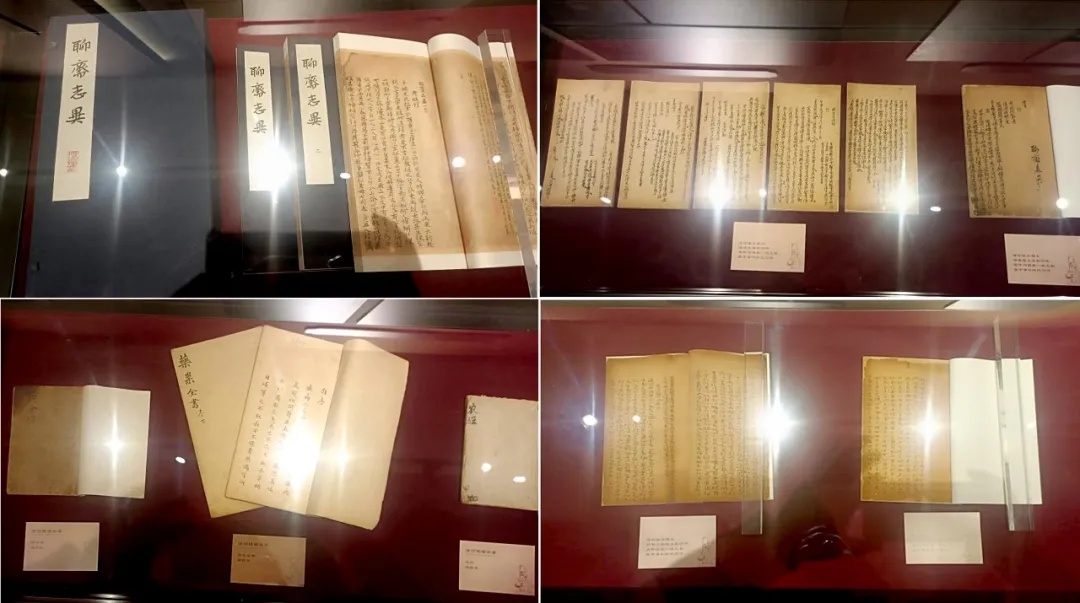 作為本次展覽的核心板塊,“筆墨藏珍”板塊實現(xiàn)了山東淄博與遼寧兩地蒲翁手跡的首次合璧展出。展品陣容堪稱豪華:既有遼寧省圖書館館藏的《聊齋志異》再造古籍,也涵蓋蒲松齡紀(jì)念館珍藏的《聊齋表文草》《擬表九篇》手稿(影印件)、蒲松齡抄《莊子·秋水》《前人詩賦文》等手跡(影印件);同時,《聊齋志異》的抄本、刻本、譯本等多種版本同步亮相,完整勾勒出聊齋文化的前世今生與精神內(nèi)核。此外,板塊還特別展出沈雁冰、李苦禪、莫言等名家的10件套聊齋題詠字畫,以及淄博陶瓷內(nèi)畫、聊齋剪紙、琉璃飾品等非遺技藝衍生品,全方位呈現(xiàn)聊齋文化在當(dāng)代的鮮活生命力與創(chuàng)新發(fā)展態(tài)勢。