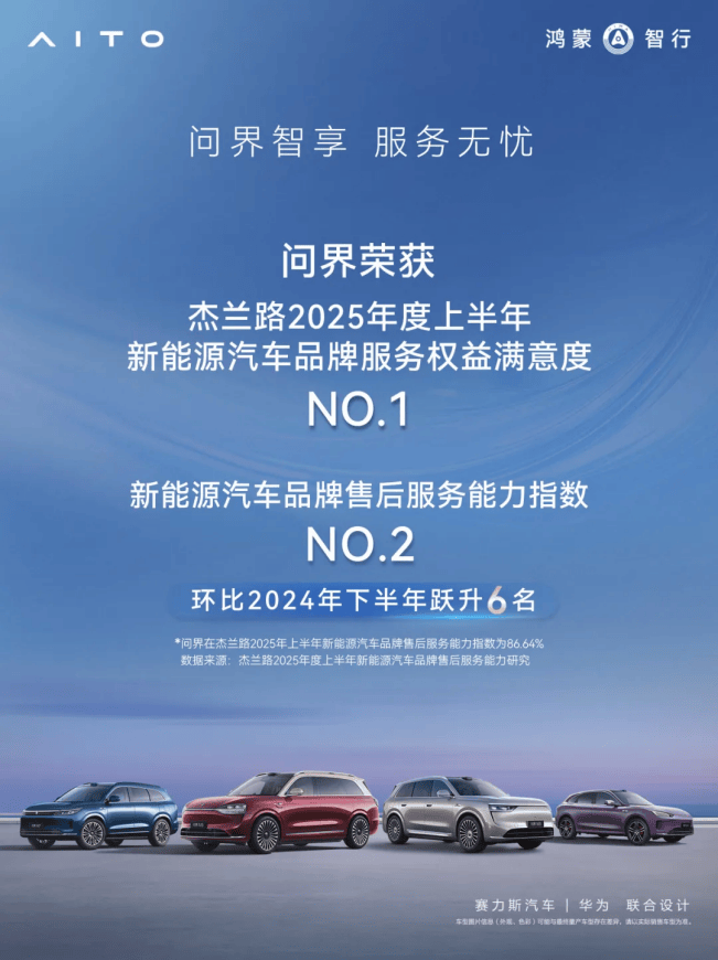 正是硬核技術實力與極致服務,讓問界獲得了用戶真正的認可。根據杰蘭路發布的《2025年度上半年新能源汽車品牌健康度研究》結果,問界榮獲品牌服務權益滿意度第一名、品牌售后服務能力指數第二名的好成績;同時,問界M9在新能源車型凈推薦值(NPS)總榜中取得85.2分的高分表現,位居領先位置。