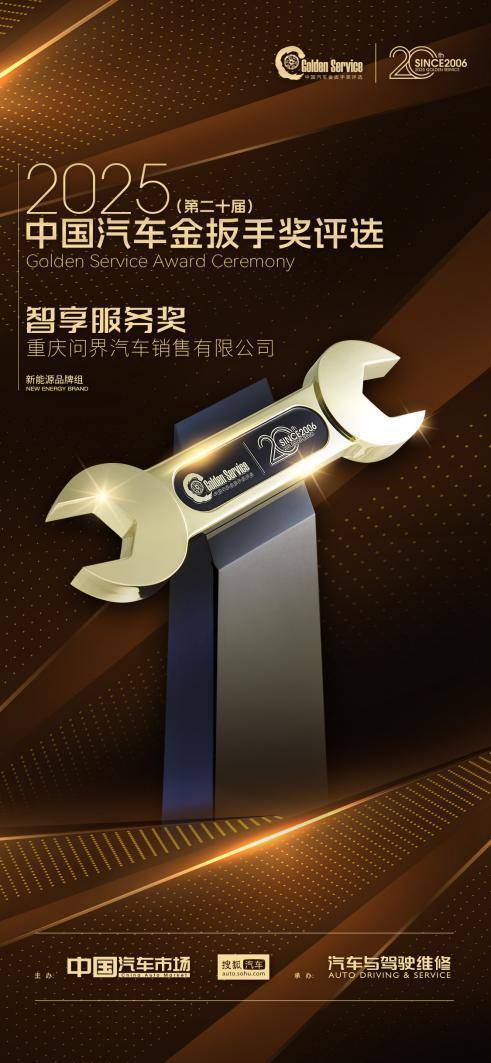 近日,由《中國汽車市場》雜志社與搜狐汽車聯合主辦的2025(第二十屆)中國汽車金扳手獎評選結果正式公布。在本次評選中,問界汽車憑借前瞻性的“智享服務體系”與不斷沉淀的用戶服務實踐,榮獲新能源品牌組“智享服務獎”,其服務能力與用戶認可度得到專業機構與市場的雙重認可。此外,問界全國12家用戶中心榮獲“金扳手獎百強質選店”稱號,有多位主播榮獲“十大主播”獎項,展現了其服務生態的全面實力。