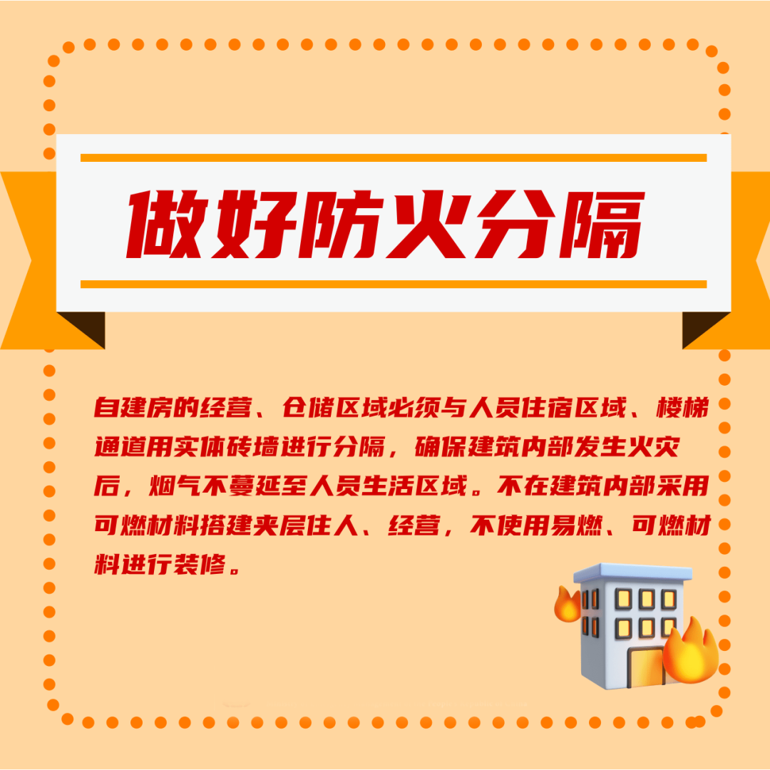 從起火原因看:日常生活中,用火用電不慎以及電氣線路故障是引發(fā)火災(zāi)的常見(jiàn)原因。從發(fā)生時(shí)間段來(lái)看:夜間多發(fā),人在熟睡中反應(yīng)遲緩,火災(zāi)初期,逗留火場(chǎng)錯(cuò)失逃離最佳時(shí)機(jī)。從受災(zāi)人群來(lái)看:大部分為老人、小孩或者行動(dòng)不便人員等弱勢(shì)群體,缺乏必要的逃生自救常識(shí)和能力。從人員傷亡原因來(lái)看:大多數(shù)因濃煙窒息死亡。搭建材料易燃:部分自建房在建設(shè)時(shí),使用聚氨酯泡沫夾芯彩鋼板作為頂棚或墻面材料。室內(nèi)采用可燃材料分隔,達(dá)不到防火分隔要求,一旦發(fā)生火災(zāi),火勢(shì)和高溫有毒煙氣會(huì)迅速蔓延。“三合一”現(xiàn)象普遍存在:居民自建房,多數(shù)未經(jīng)正規(guī)的設(shè)計(jì),消防安全條件差。樓內(nèi)生活、經(jīng)營(yíng)、倉(cāng)儲(chǔ)“三合一”,生活區(qū)域沒(méi)有與經(jīng)營(yíng)、倉(cāng)儲(chǔ)區(qū)域進(jìn)行實(shí)體分隔。疏散通道不規(guī)范:大多自建房只有一個(gè)樓梯,發(fā)生火災(zāi)難以逃生,加上建筑窗戶(hù)大多安裝防盜網(wǎng)窗或鐵柵欄,沒(méi)有開(kāi)設(shè)逃生窗口,一旦發(fā)生火災(zāi),極易影響火災(zāi)疏散逃生和消防救援。不配備消防設(shè)施:部分自建房沒(méi)有相應(yīng)的獨(dú)立式煙感報(bào)警裝置,沒(méi)有配置滅火器、防煙面罩、滅火毯等消防安全器材,一旦發(fā)生火災(zāi),難以及時(shí)撲救和逃生。用火用電不規(guī)范:部分自建房電氣線路敷設(shè)不規(guī)范,隨意安裝連接電器設(shè)備,室內(nèi)電線縱橫交錯(cuò),私接亂拉的情況十分普遍,電氣線路長(zhǎng)時(shí)間超負(fù)荷運(yùn)行,極易老化損壞,引發(fā)火災(zāi)。人員安全意識(shí)薄弱:自建房使用人員復(fù)雜,防火意識(shí)普遍淡薄,缺少系統(tǒng)的消防知識(shí)培訓(xùn),對(duì)于火災(zāi)的危險(xiǎn)認(rèn)識(shí)不足,不能及時(shí)發(fā)現(xiàn)消防安全隱患。做好日常防火工作十分重要