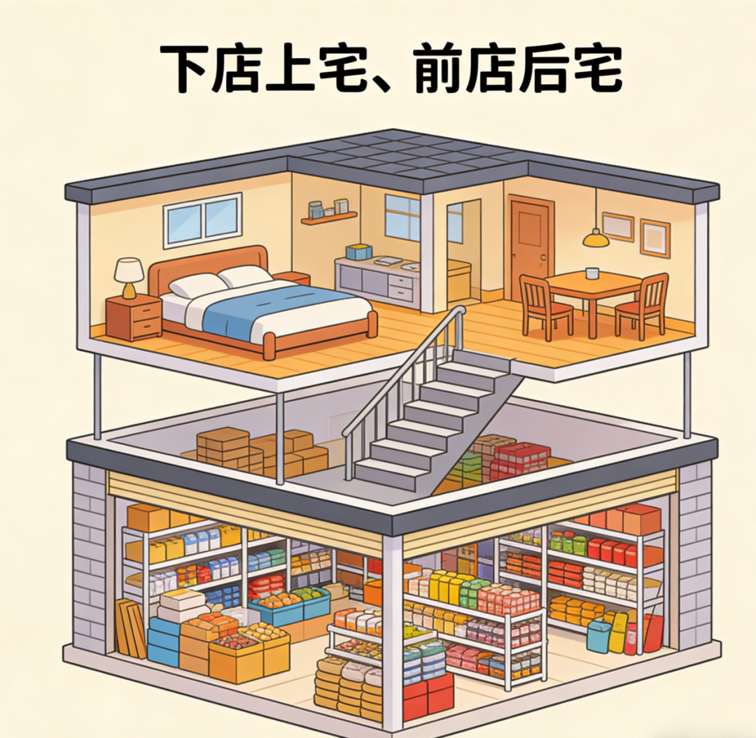 是典型的集生活、經(jīng)營(yíng)、倉(cāng)儲(chǔ)