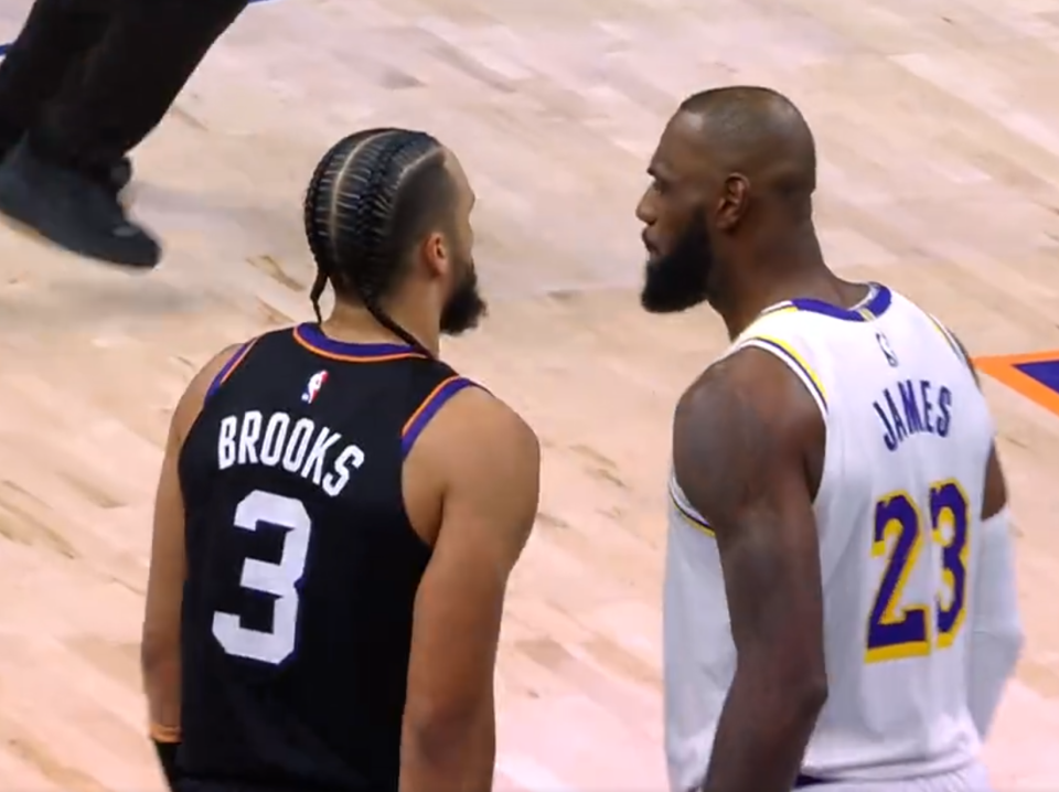 末節(jié)開局,詹姆斯上籃與三分連續(xù)得分,湖人還接連罰中4球,一波9-0攻勢擴大18分優(yōu)勢打停太陽,湖人從第三節(jié)后半段開始已經(jīng)打出24-0攻勢。阿倫兩罰全中打破太陽得分荒,湖人連得4分?jǐn)U大99-79領(lǐng)先20分優(yōu)勢,太陽連追5分。范德比爾特三分命中,太陽一波9-0攻勢追到差9分,艾頓與馬威一度發(fā)生爭吵。湖人連得4分鞏固局勢,布克兩罰全中,東契奇三分?jǐn)U大109-95打停太陽。布克兩罰全中,艾頓拋射繼續(xù)維持14分優(yōu)勢,太陽多點開花一波12-0攻勢追到僅差2分,詹姆斯關(guān)鍵上籃命中。阿倫兩罰全中,斯馬特被鄧恩封蓋,布克三分不中后搶到籃板,并助攻狄龍命中反超三分,但狄龍隨后起身撞詹姆斯吃到第二次技術(shù)犯規(guī)被驅(qū)逐,詹姆斯扳平罰球不中。詹姆斯造布克三分打手犯規(guī),太陽挑戰(zhàn)失敗,詹姆斯三罰兩中準(zhǔn)絕殺,阿倫關(guān)鍵一攻被詹姆斯封蓋。斯馬特被犯規(guī)繼續(xù)罰球擴大優(yōu)勢,最終湖人險勝太陽。