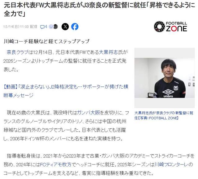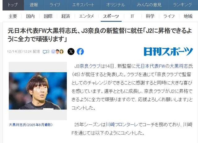 日本媒體最近也是多方報道了大黑將志成為奈良隊主教練的消息,而且都不約而同地提到了他曾在中國踢球的標簽,所以他這次上任,對于正在全力推動年輕球員留洋的中國足球來說,確實是一個重大利好了!(老邱)