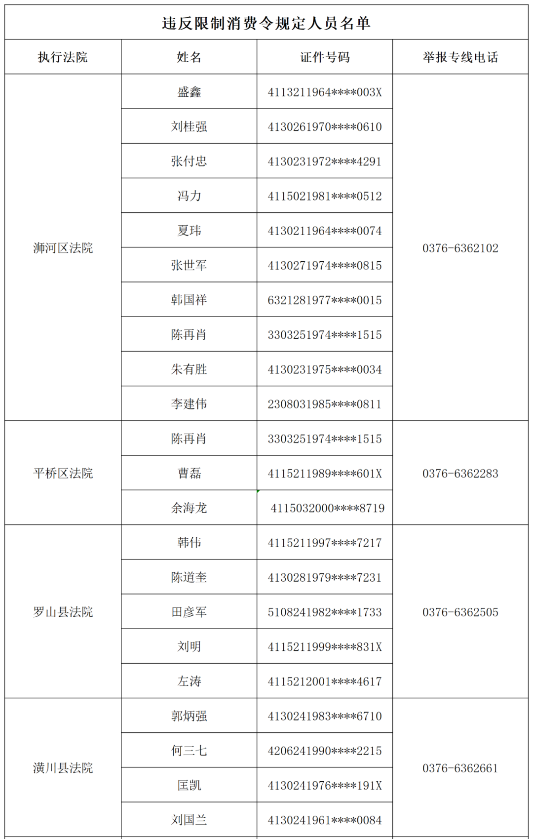 為維護司法權威,捍衛法律尊嚴,切實保障勝訴當事人合法權益,嚴厲打擊規避執行、抗拒執行行為,針對部分被執行人違反限制消費令(以下簡稱“限消令”)仍進行高消費、拒不履行生效法律文書確定義務的情形,依照《中華人民共和國民事訴訟法》《中華人民共和國刑法》及《最高人民法院關于限制被執行人高消費及有關消費的若干規定》等相關法律、司法解釋,現公告如下: