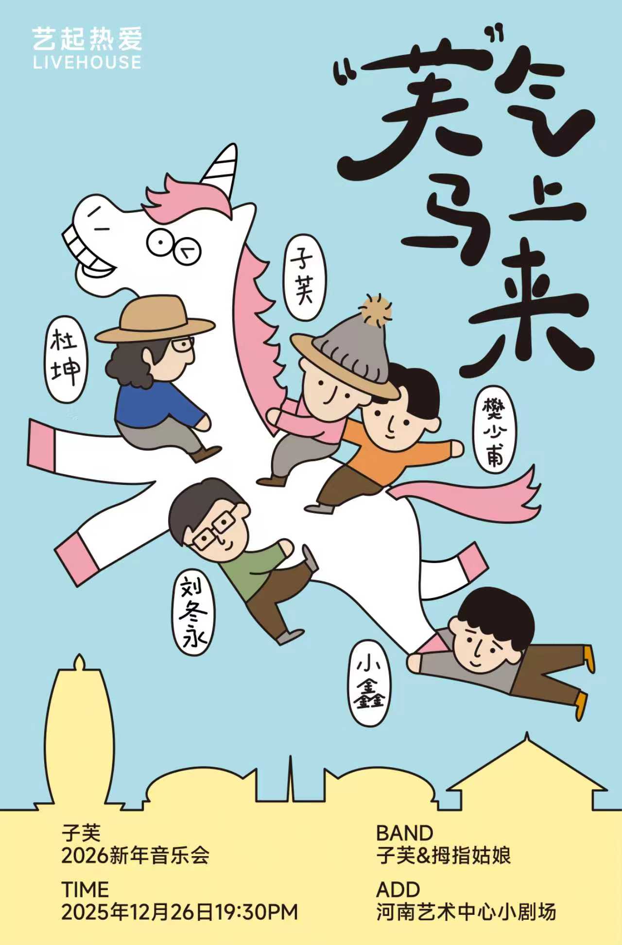 2025年12月26日19:30,子芙和拇指姑娘樂隊將攜「芙氣馬上來」新年音樂會,即將登陸河南藝術(shù)中心小劇場,用旋律為歲末添暖,用歌聲為新年啟序。
