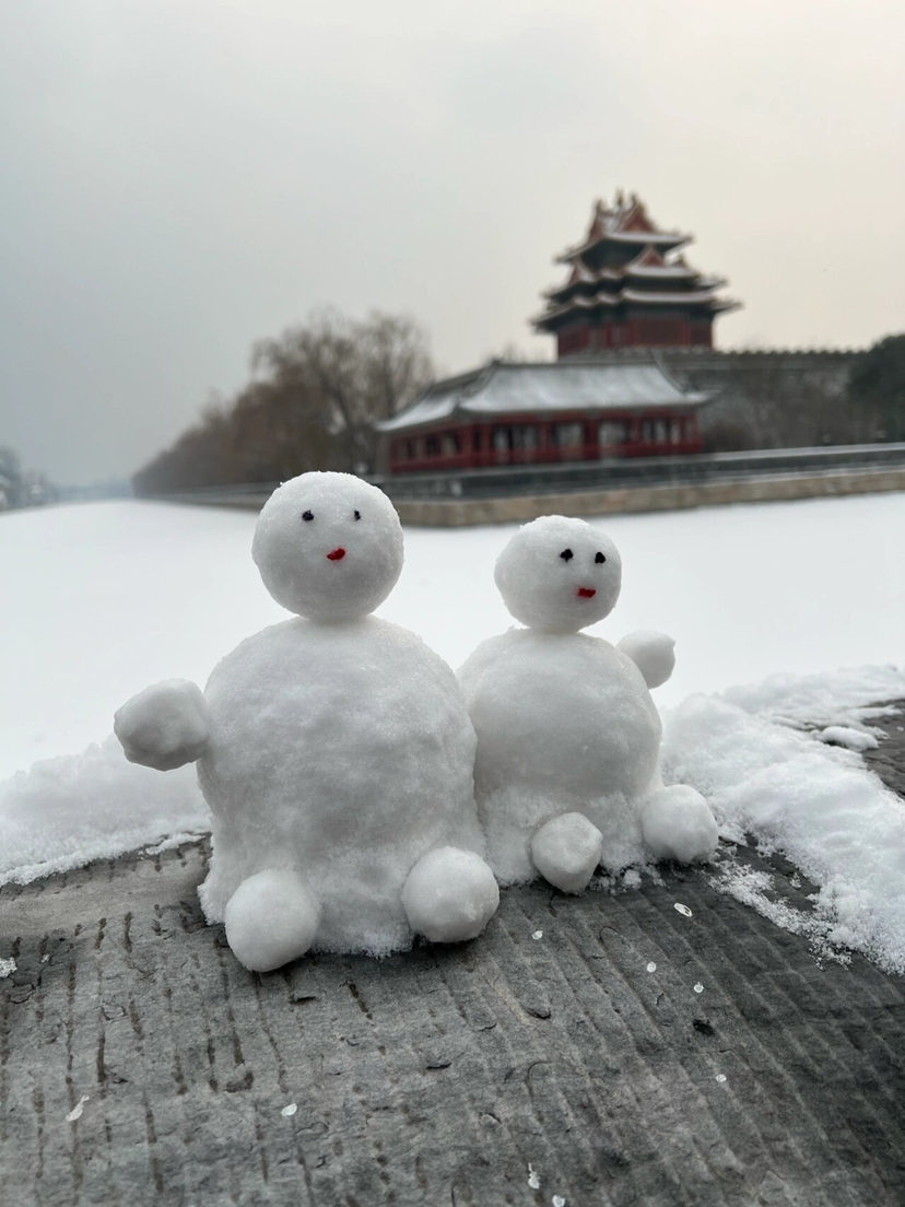 當孩子們在空中盤旋的嬉笑聲,追隨他們的身影,一同消失在古城那幽深的門洞,賓陽城門外空曠的雪地上,只剩下幾個憨態可鞠的小雪人—— 守望著,這座睡意朦朧的古城……
