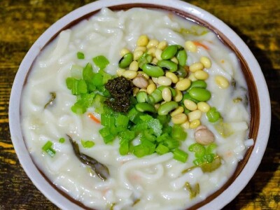 我迫不及待地接過一碗,只見湯中木耳如靈動的墨色精靈,在湯中輕盈舞動,脆爽可口,似在訴說著山林間的清新故事;面筋似柔軟的云朵,勁道十足,帶著手工揉制的溫度與誠意;海帶則像蜿蜒的海之絲帶,綿軟中帶著絲絲韌性,仿佛攜著大海的深邃與包容。各種食材在溫和而精妙的調味下相互交融,相得益彰,宛如一幅和諧美妙的自然畫卷。輕輕抿上一口,那獨特的滋味瞬間在舌尖上綻放,溫暖順著喉嚨如潺潺溪流般流淌至全身,仿佛一束溫暖的光,穿透了舟車勞頓的疲憊與嚴寒的侵襲,讓人頓感身心舒暢,如沐春風。