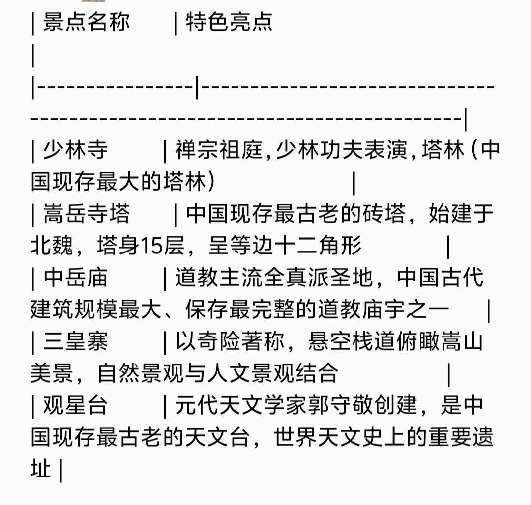 - 文化體驗:觀看少林功夫表演,參與登山徒步,參觀歷史古跡,感受“天地之中”的深厚文化底蘊。