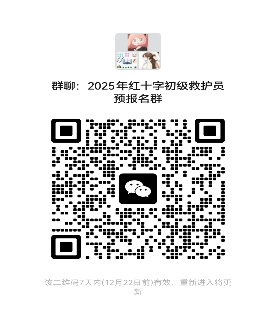 線上報名:學(xué)員通過掃描下方二維碼加入“2025年紅十字初級救護(hù)員預(yù)報名群”。進(jìn)入報名系統(tǒng)填寫個人信息。?