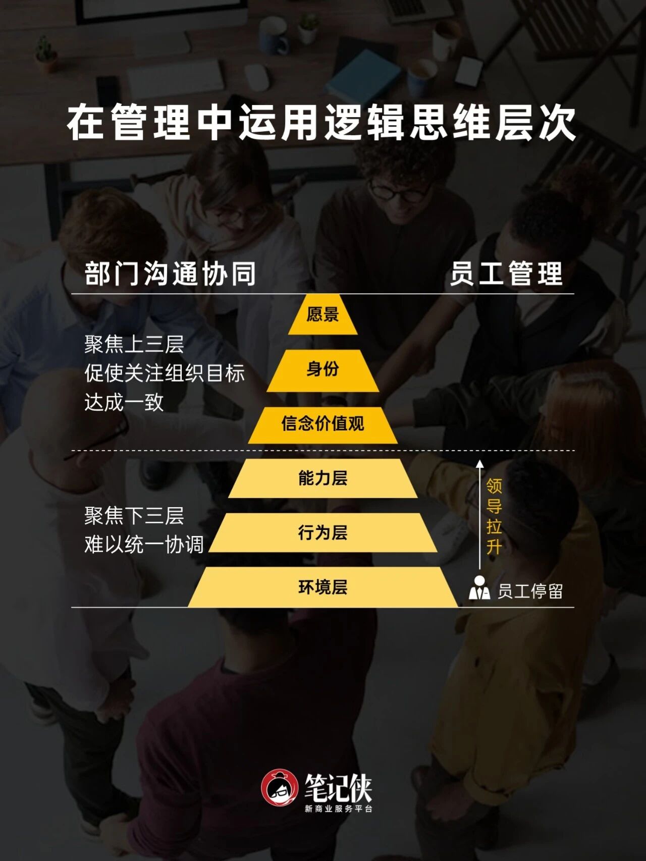 當員工停留在環境層和行為層時,需要領導向上層次拉升員工。通過升維員工的認知,打開員工的視野與局限,促使目標實現。