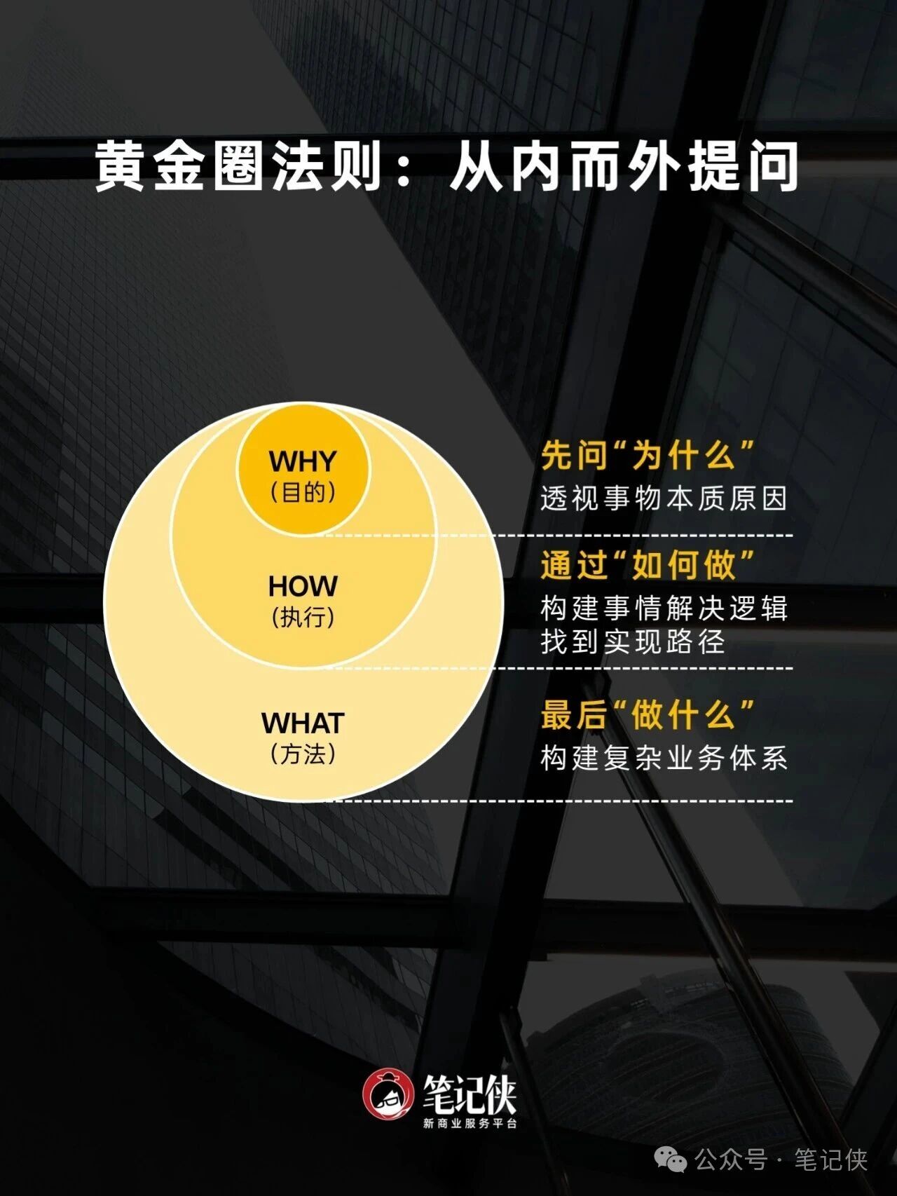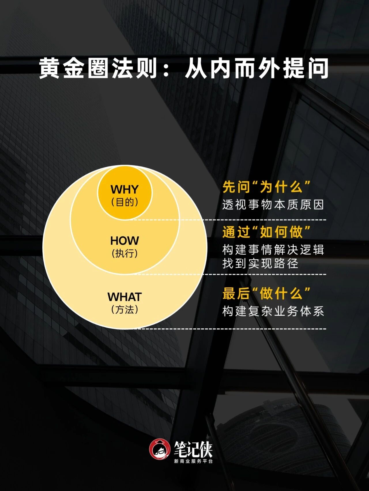 黃金圈法則的核心是對任何事情,從內而外進行提問。