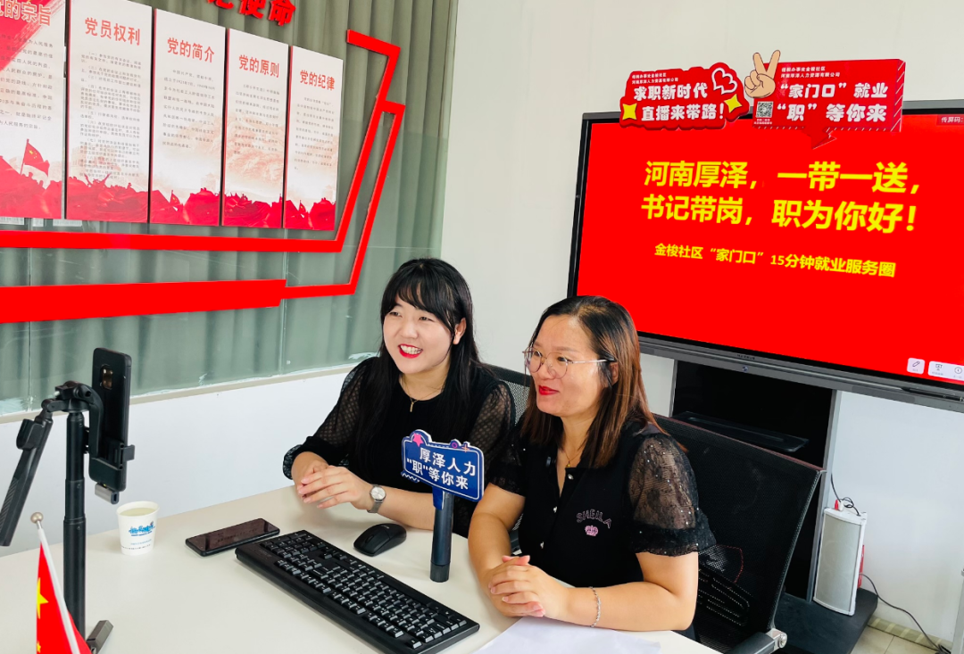 社區充分發揮專屬網格內企業資源優勢,主動“走出去、請進來”。開展“直播帶崗”,黨支部書記變身“主播”,為企業“代言”,助企業留才;舉辦“家門口”招聘會,促成130余人就業;社區還巧妙地將招聘會與“夜經濟”結合,舉辦“夜市招聘會”,吸引42家企業提供崗位360個,讓居民尤其是青年人和困難群體,在“15分鐘就業服務圈”內就能找到人生出彩的機會。