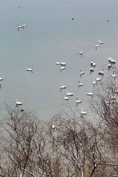 天鵝湖也是今年唯一一次向黃河去注水,往常都是黃河給天鵝湖注水,因為今年的汛期來的比較晚,全國有很多地方都有天鵝。這邊的天鵝中線是外蒙古一帶,東線是西伯利亞。西伯利亞的天鵝是飛飛到山東的榮成,320這塊主要是外蒙的,海鷗基本上都在頭頂上飛,喂的時候可以扔稍微高一些,它可以接得住。