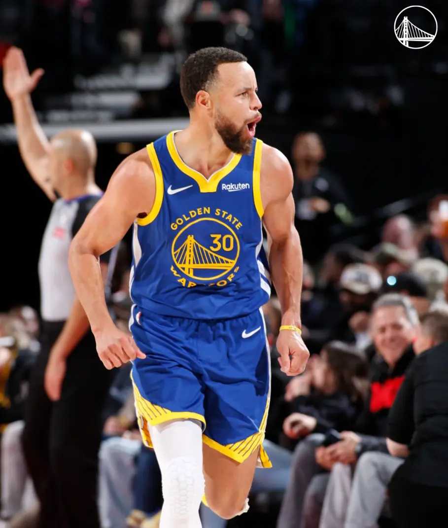 進入下半場,比賽的激烈程度陡然升級。庫里徹底進入“殺神”模式,三分線外彈無虛發,無論是面對貼身防守還是多人包夾,他總能找到出手空間,12記三分球如同12記重錘,一次次敲打著開拓者的防線。單場48分的得分,放在任何一場比賽里,都是足以左右勝負的超級數據,勇士隊也靠著庫里的逆天發揮,始終和開拓者僵持不下。