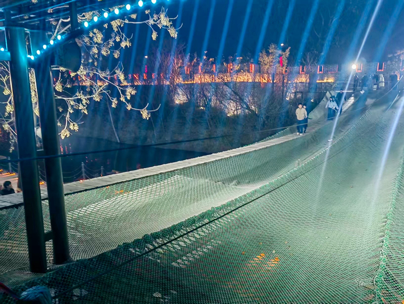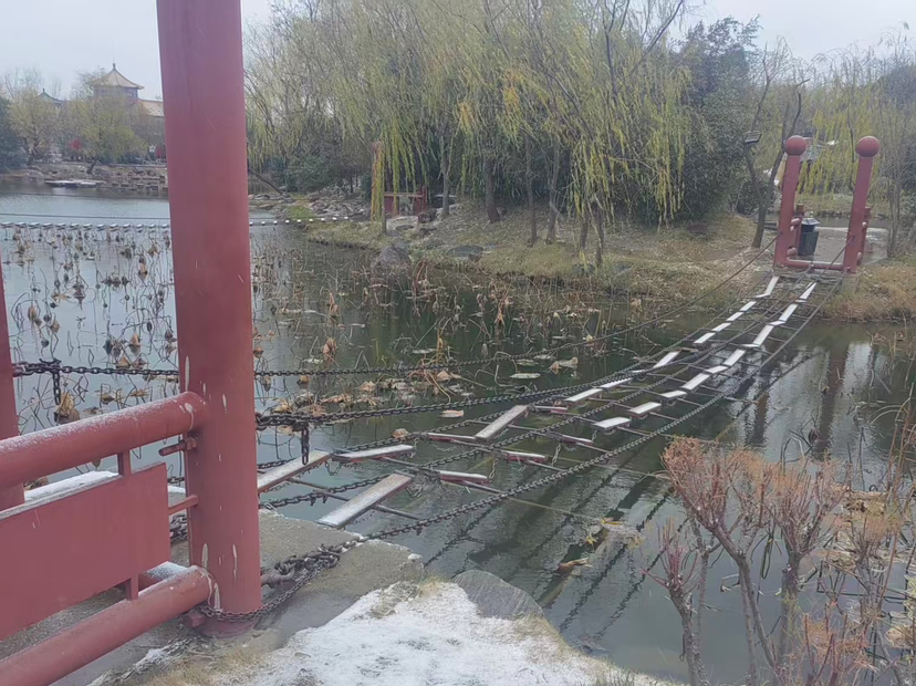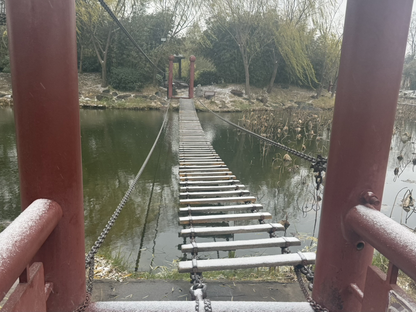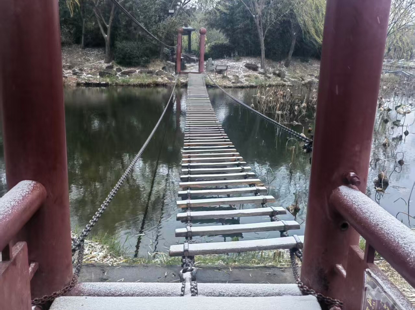 等我走過去,都有點出汗了,腿有點軟,不過這種體驗感還是挺好的。后來在中國翰園也看到有這種過橋的體驗,不過我沒有走,因為當時下著雪,踩在木板上太滑。