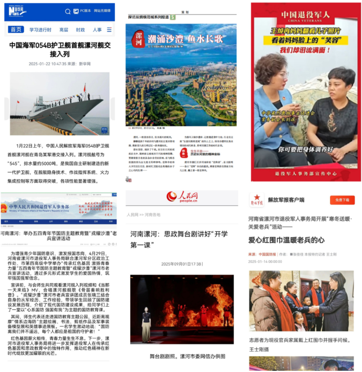 中國雙擁、央視軍事等平臺宣傳報道漯河市優(yōu)秀退役軍人事跡。
