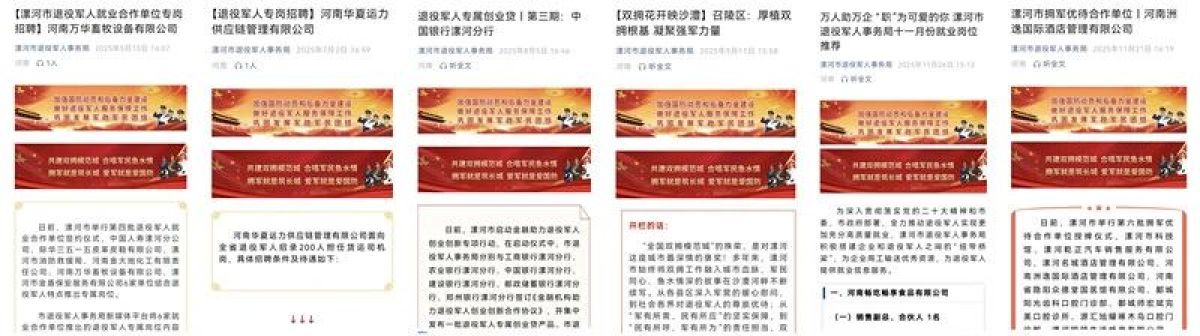 開設(shè)“雙擁花開映沙澧”“退役軍人專崗招聘”“退役軍人專屬創(chuàng)業(yè)貸”“漯河市退役軍人就業(yè)合作單位專崗招聘”“漯河市擁軍優(yōu)待合作單位”專欄。
