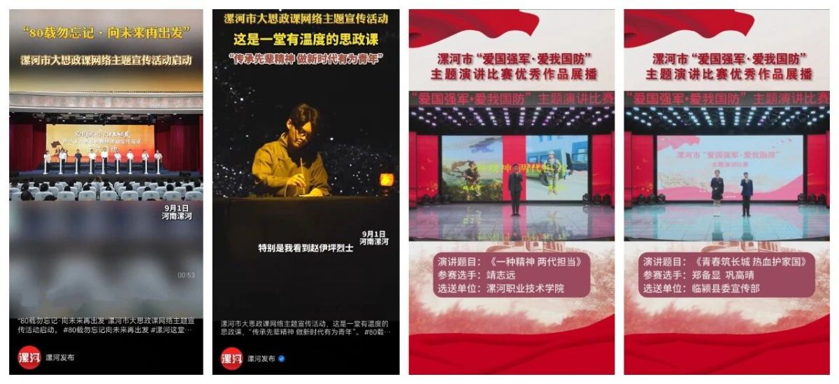 聯(lián)合市委宣傳部、網(wǎng)信辦等部門開展“80載勿忘記·向未來再出發(fā)”漯河市大思政課網(wǎng)絡(luò)主題宣傳、“愛國強軍 愛我國防”主題演講比賽活動。