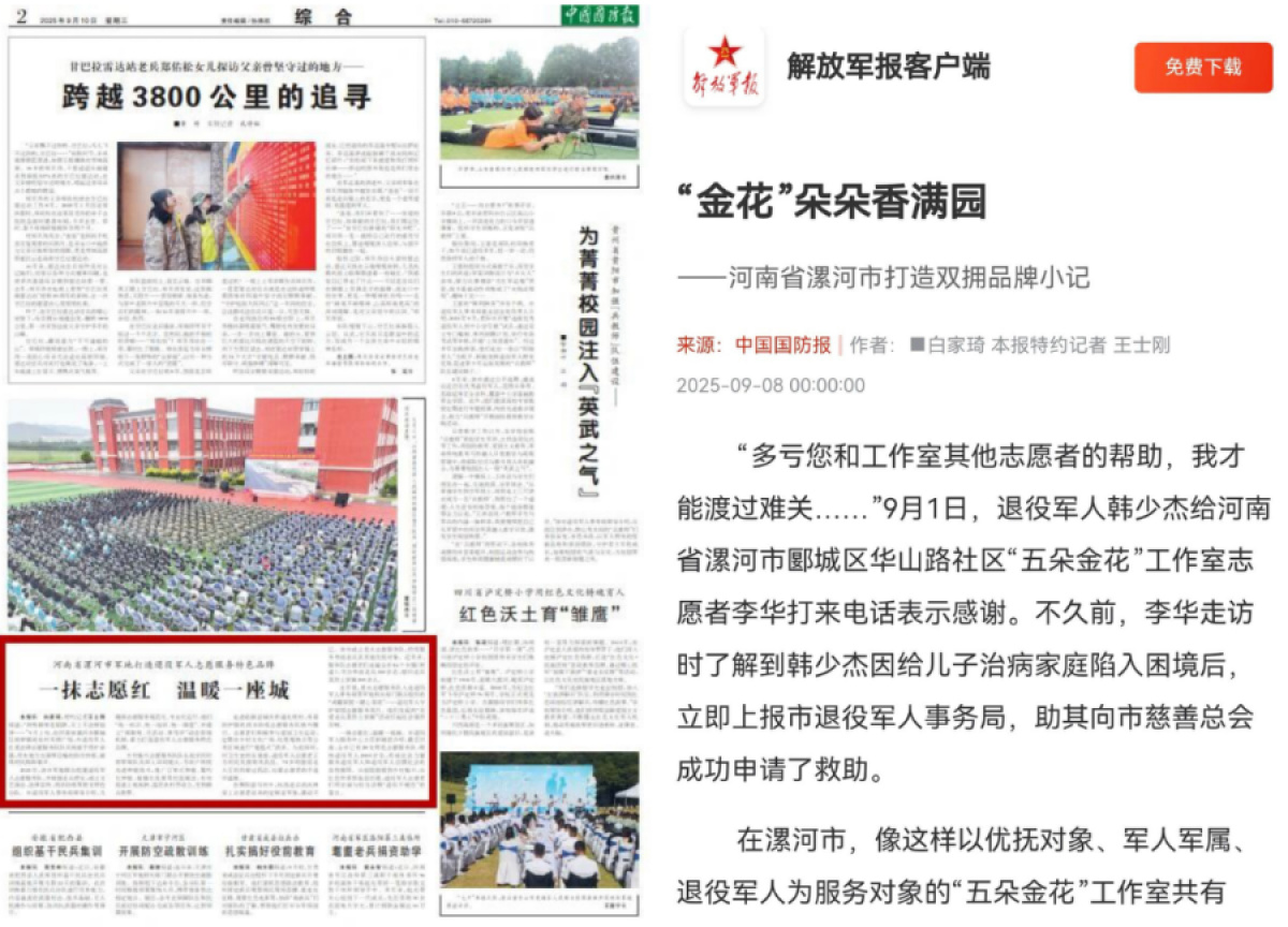 加強“戎耀沙澧”漯河市退役軍人志愿服務(wù)隊宣傳、“五朵金花”工作室、老兵志愿服務(wù)隊愛心助考等被解放軍報、中國國防報報道。