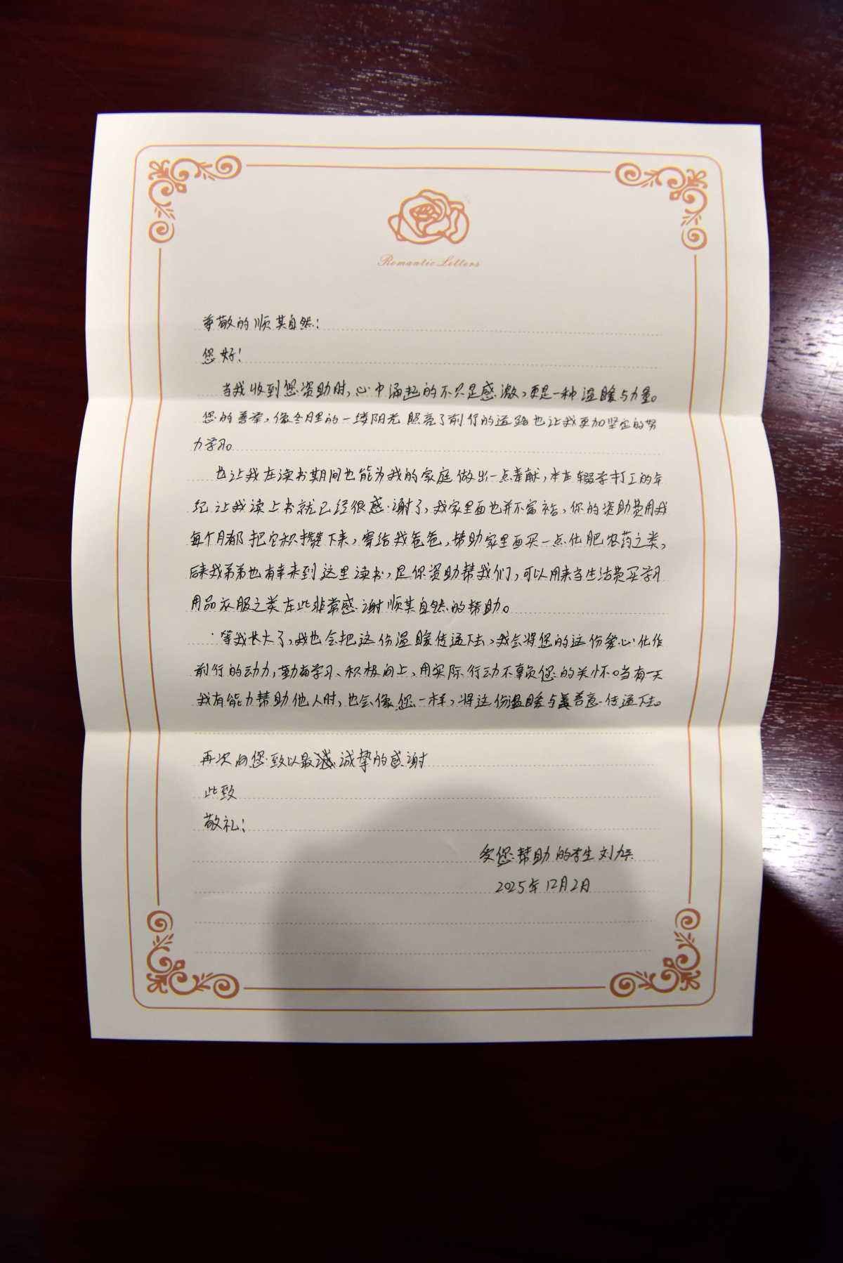 “我們收到的,不僅是經濟的支持,更是一份關于如何做人、如何對待世界的珍貴答卷。”學子們特別提到,這位愛心人士用行動教會他們,“真正的善良,是讓受助者感受到尊嚴與力量,是播種一顆‘未來也能成為他人之光’的種子。”