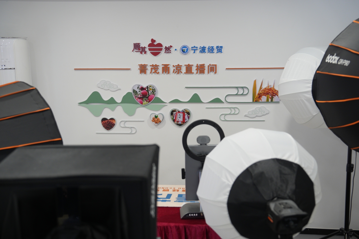 “菁茂甬涼直播間”背景墻。