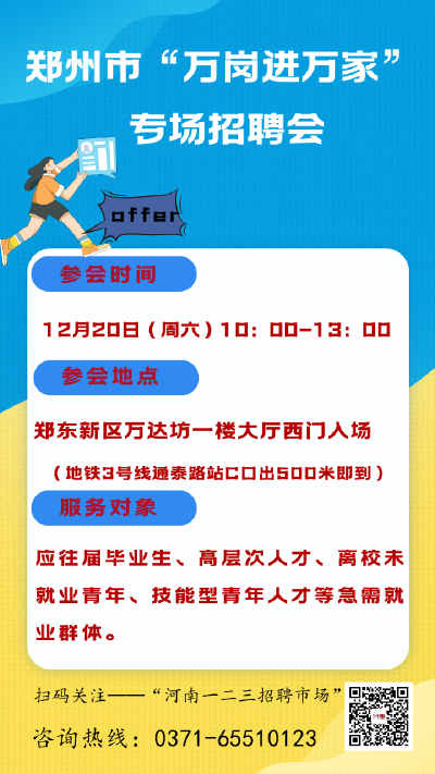 誠邀廣大高校畢業(yè)生、待業(yè)青年及有求職需求的市民朋友屆時前往參會,把握就業(yè)機(jī)遇。如有咨詢需求,可撥打聯(lián)系電話0371-56666878。