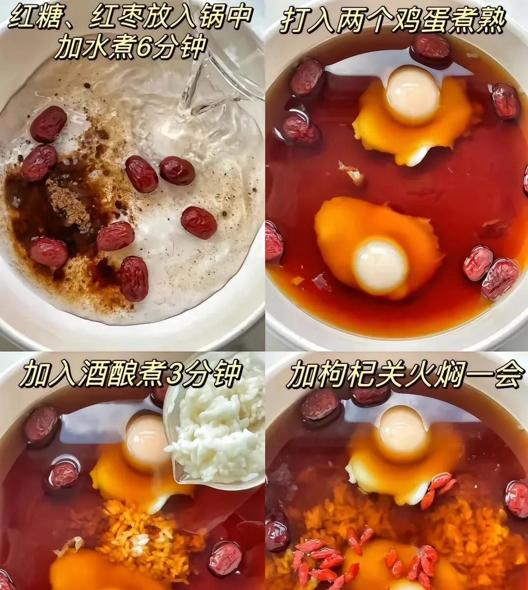 做法賊簡單:取一小碗酒釀(超市或自家釀的都行),加水煮開,打倆雞蛋攪勻,最后撒紅糖。小火慢燉5分鐘,出鍋香噴噴!喝一口,甜絲絲暖融融,從胃里熱到腳尖。