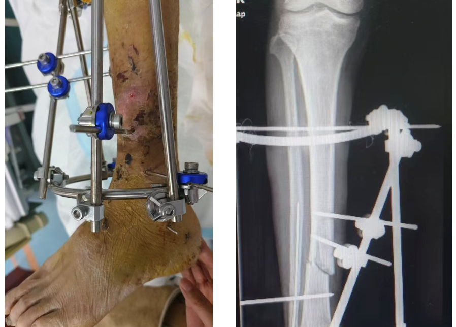 骨折外固定架固定術是一種通過體外裝置連接骨折斷端、維持骨穩定的手術方式。適用于開放性骨折、嚴重軟組織損傷或感染風險較高的骨折及需要骨延長或肢體矯形的患者。其特點是創傷小、操作靈活,且便于術后調整和護理,是復雜骨折救治的重要手段。