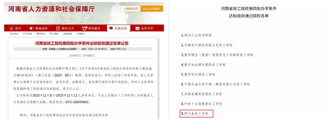 近日,河南省人力資源和社會保障廳發(fā)布了《河南省技工院校第四批辦學(xué)條件達(dá)標(biāo)驗收通過名單公告》,其中,伊川縣技工學(xué)校榜上有名。