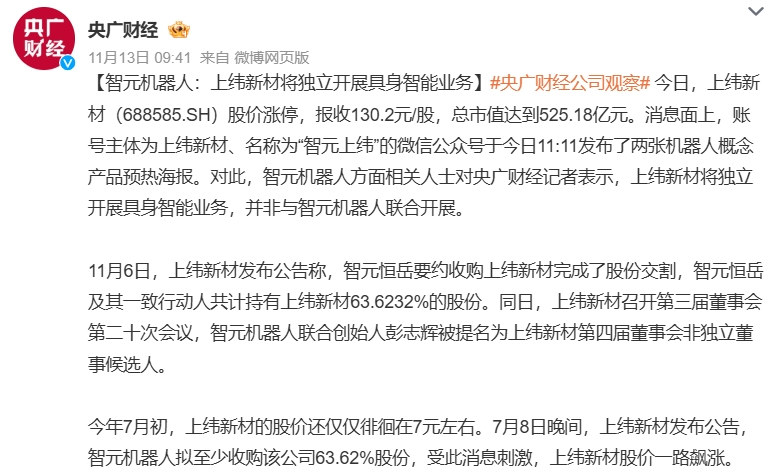 近期,就在智元機器人完成收購上緯新材的同期,又一家AI獨角獸企業籌劃“買入”一家上市公司。
