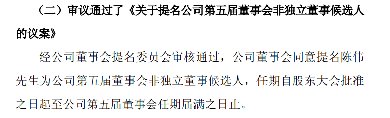 11月24日,雪天鹽業召開第五屆董事會第十一次會議,審議通過了《關于提名公司第五屆董事會非獨立董事候選人的議案》,同意提名陳偉為第五屆董事會非獨立董事候選人,任期自股東大會審議通過之日起至第五屆董事會屆滿為止。