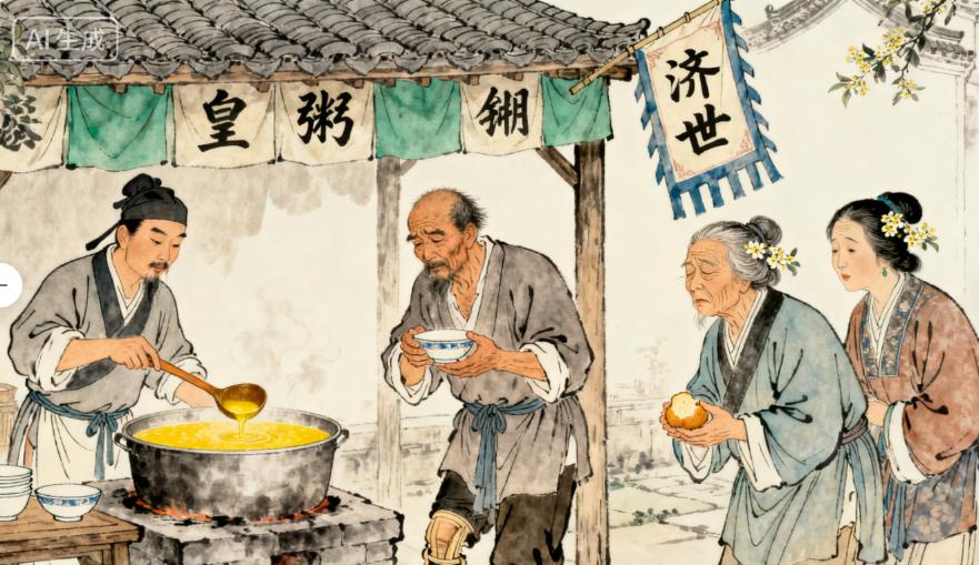 兩人走了大約半個時辰,來到了城隍廟附近。城隍廟門口搭著幾個粥棚,幾個穿著粗布衣裳的伙計正拿著大勺子,給排隊的乞丐們盛粥。這些乞丐有的斷了胳膊,有的瞎了眼睛,一個個面黃肌瘦,衣衫襤褸,捧著破碗的手都在發(fā)抖。