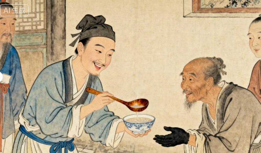 周小生不解地問:“沈老爺,那福氣是什么?怎么才能有福氣呢?”沈萬三指著粥棚里正在給乞丐盛粥的伙計,說:“福氣就是懂得感恩,懂得付出。你看那些伙計,他們每個月的工錢并不多,可他們每天都很認真地給乞丐盛粥,從不嫌棄他們臟。
