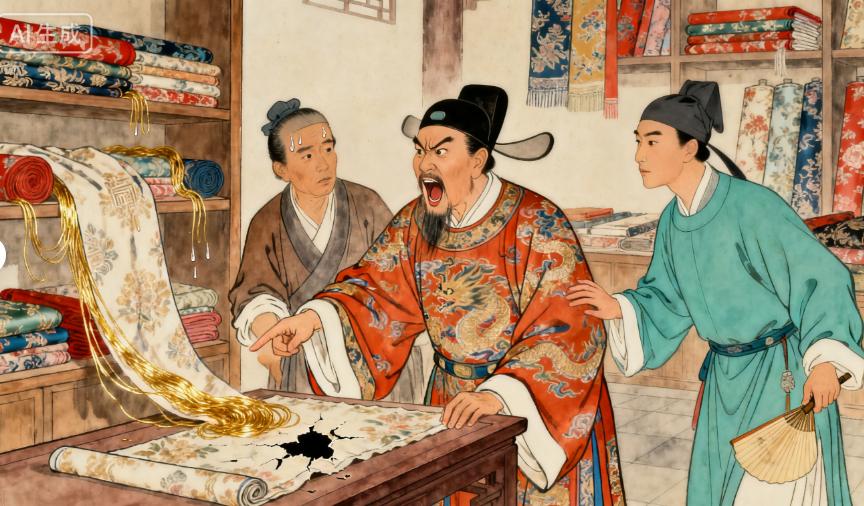 沈萬三拿起柜臺上的一塊蜀錦,摸了摸,對中年男子說:“兄臺,這蜀錦是我從四川專門運來的,每一匹都經(jīng)過嚴格挑選,質(zhì)量絕對有保障。您衣服上的破洞,看起來像是被尖銳的東西勾到的,并非質(zhì)量問題。不過,既然您覺得不滿意,我們可以給您換一匹新的綢緞,再送您兩匹絲綢,就當(dāng)是我們的一點心意,您看怎么樣?”
