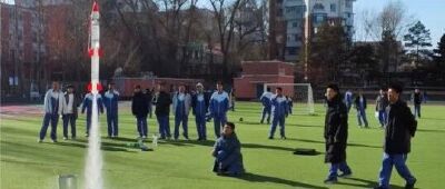 在留好氣孔與出水孔的瓶體上粘貼3D打印的尾翼和底座,做成簡易的“水火箭”,在學生的注視下,手持打氣筒的操作者持續向瓶內加壓構建高壓體系,當壓力突破臨界閾值時,“水火箭”瞬時噴射升空,劃出一道道弧線。從流體力學原理的精準運用到團隊協作的默契磨合,每一枚“火箭”的騰空而起,都是物理知識與實踐創意的完美交融……在東北師范大學附屬中學第十九屆科技節現場,討論聲與驚嘆聲交織。這是吉林省科技教育蓬勃發展的一個縮影。