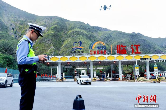 隴南高速交警運用無人機巡查路面并進行安全提示。(資料圖)鞏晶晶 攝