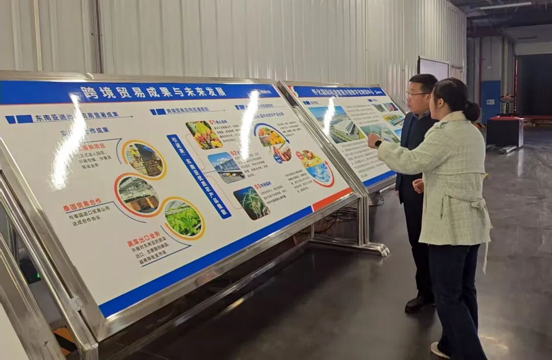 在懷化國際陸港,考察組實地走訪了颶速冷鏈倉儲中心和順豐武陵山區域分撥中心,重點了解了數字云倉運營模式與智慧化園區建設進展;在廣鐵集團長沙國際物流中心,與湖南省冷鏈物流協會會長孟立軍、跨境班列運營單位負責人劉杰等座談,深入交流了中老、中越、中泰水果班列及跨境卡航的貨源組織、渠道分銷等關鍵環節,并就未來在跨境冷鏈運輸、海外倉配、終端分銷等領域的合作可能性進行了探討。