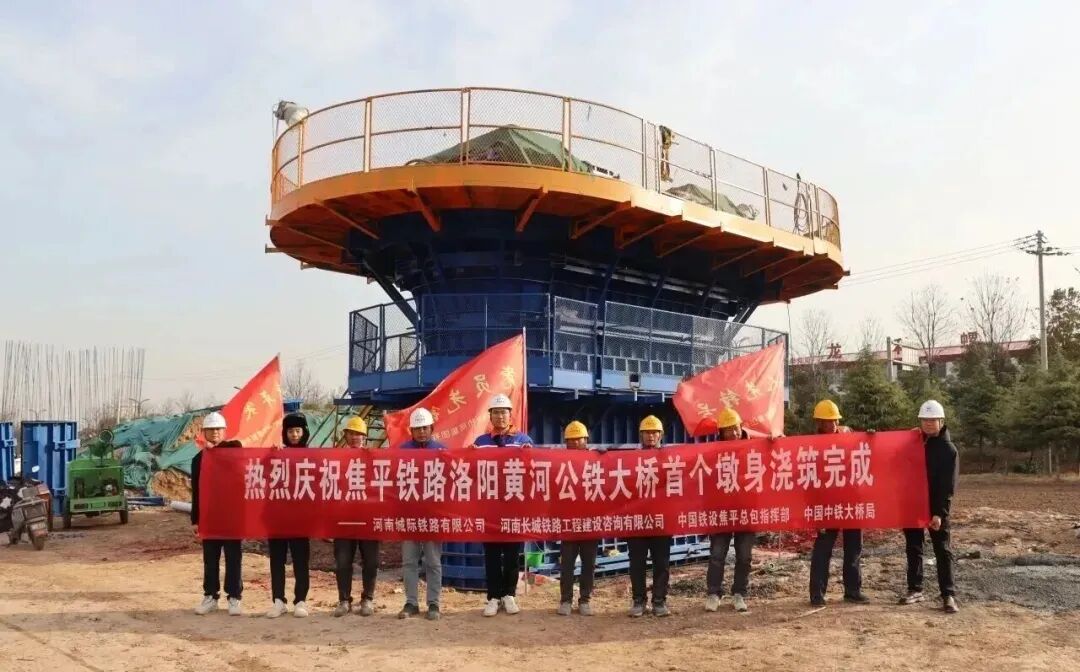 近日,焦平高鐵建設迎來新進展。洛陽黃河公鐵大橋首個雙線圓端形實體橋墩澆筑完成,標志著洛陽黃河公鐵大橋正式邁入墩身施工的新階段。