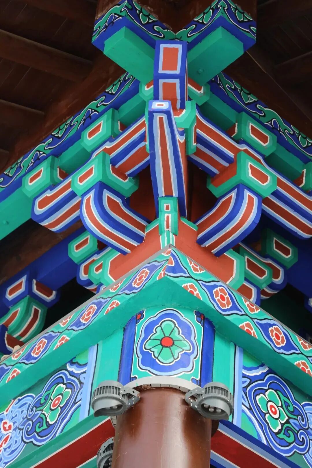 細看角落,檐下常有彩畫點綴,顏色明麗卻不過艷,與灰磚、木柱搭配得剛剛好。