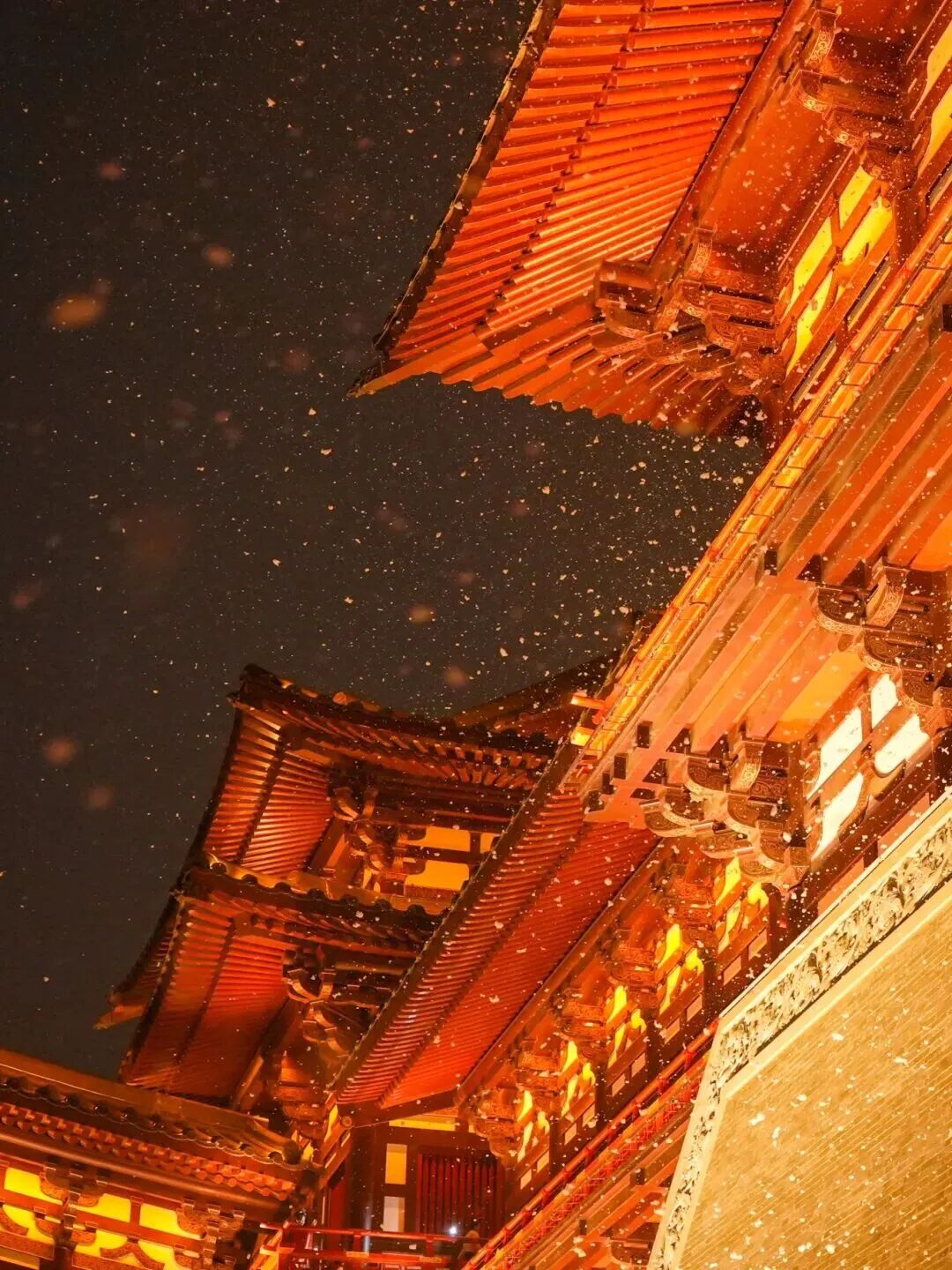 時至冬日,“天門降雪”的再度回歸,讓應天門原本就磅礴大氣的建筑美學,更添一份如詩如畫的意境。