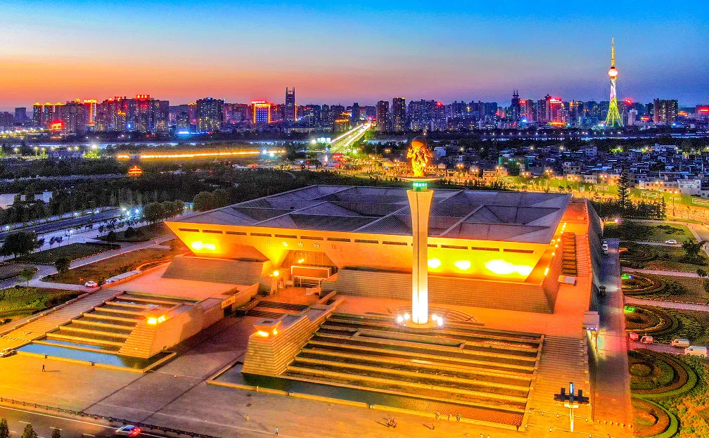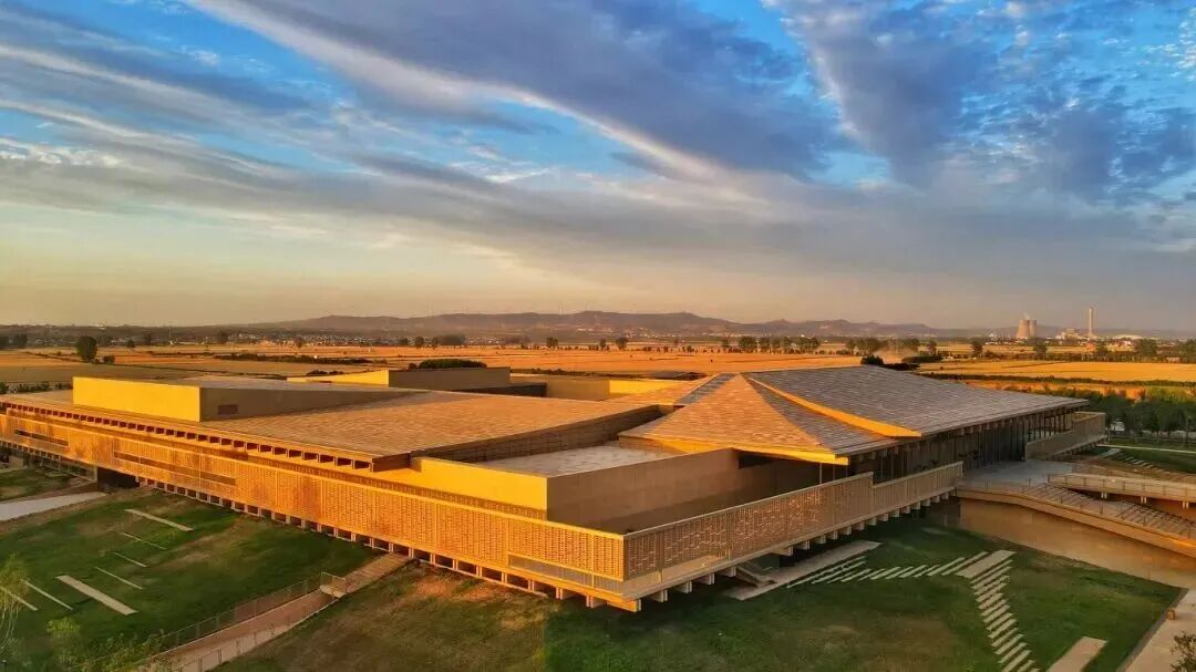 隋唐大運河文化博物館,屋頂一個個半圓形金黃色構件,像層層波浪,呼應“運河”主題。